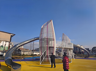 多样化滑梯:根据场地条件和客户需求,设计多种不同形状和高度的滑梯,如直坡、波浪型、螺旋滑梯等,以满足不同年龄段孩子的需求。