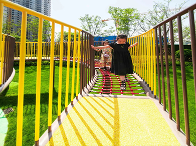 防护网:在绳索桥的下方或者两侧设置防护网,防止使用者坠落。防护网的网眼大小要合适,既要防止人员坠落,又不能影响视线和整体美观。